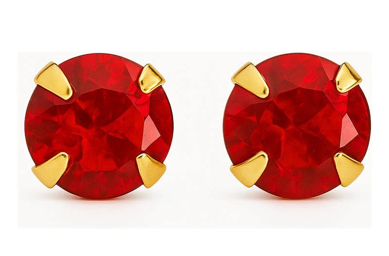 BRINCO INFANTIL ZIRCÔNIA VERMELHA 4MM OURO 18K.