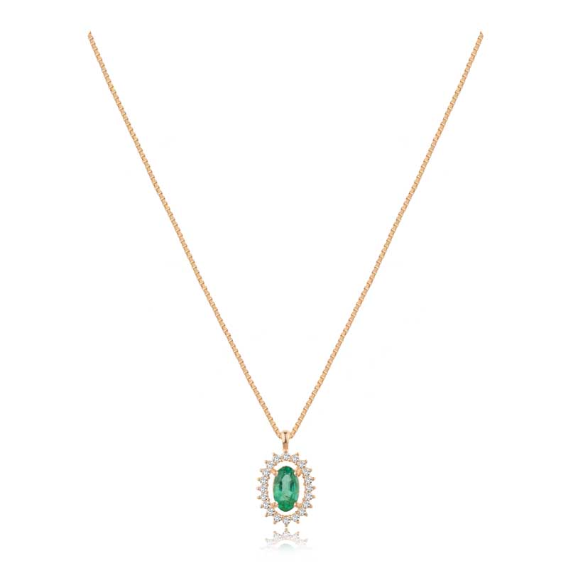 GARGANTILHA ESMERALDA OVAL E DIAMANTES 45CM COMPRIMENTO OURO 18K. PREMIUM COLLECTION. OBS ATÉ 10 DIAS PARA ENTREGA.