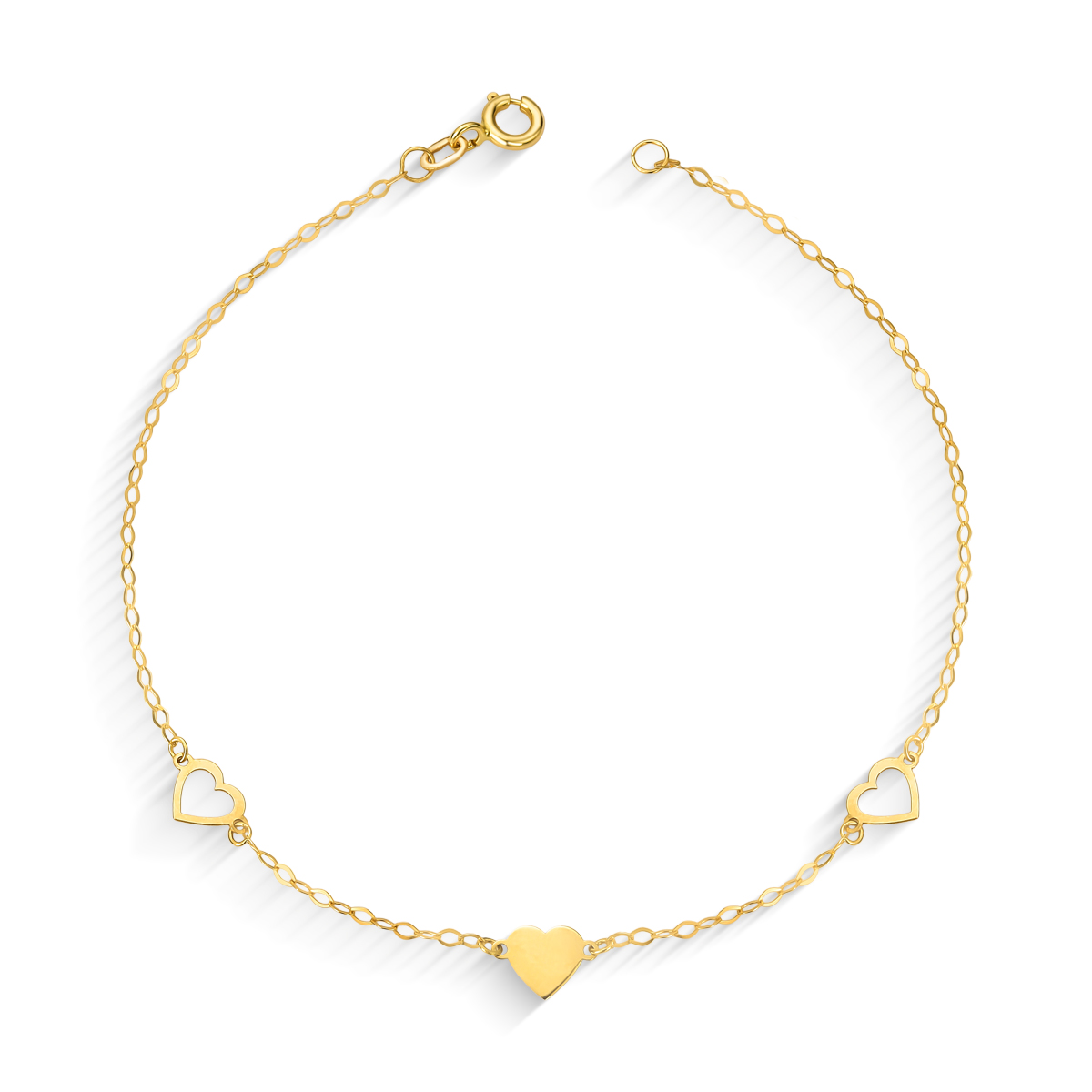 PULSEIRA BALÃOZINHO TRÊS CORAÇÕES LISO E VAZADOS COM 18CM OURO 18K.