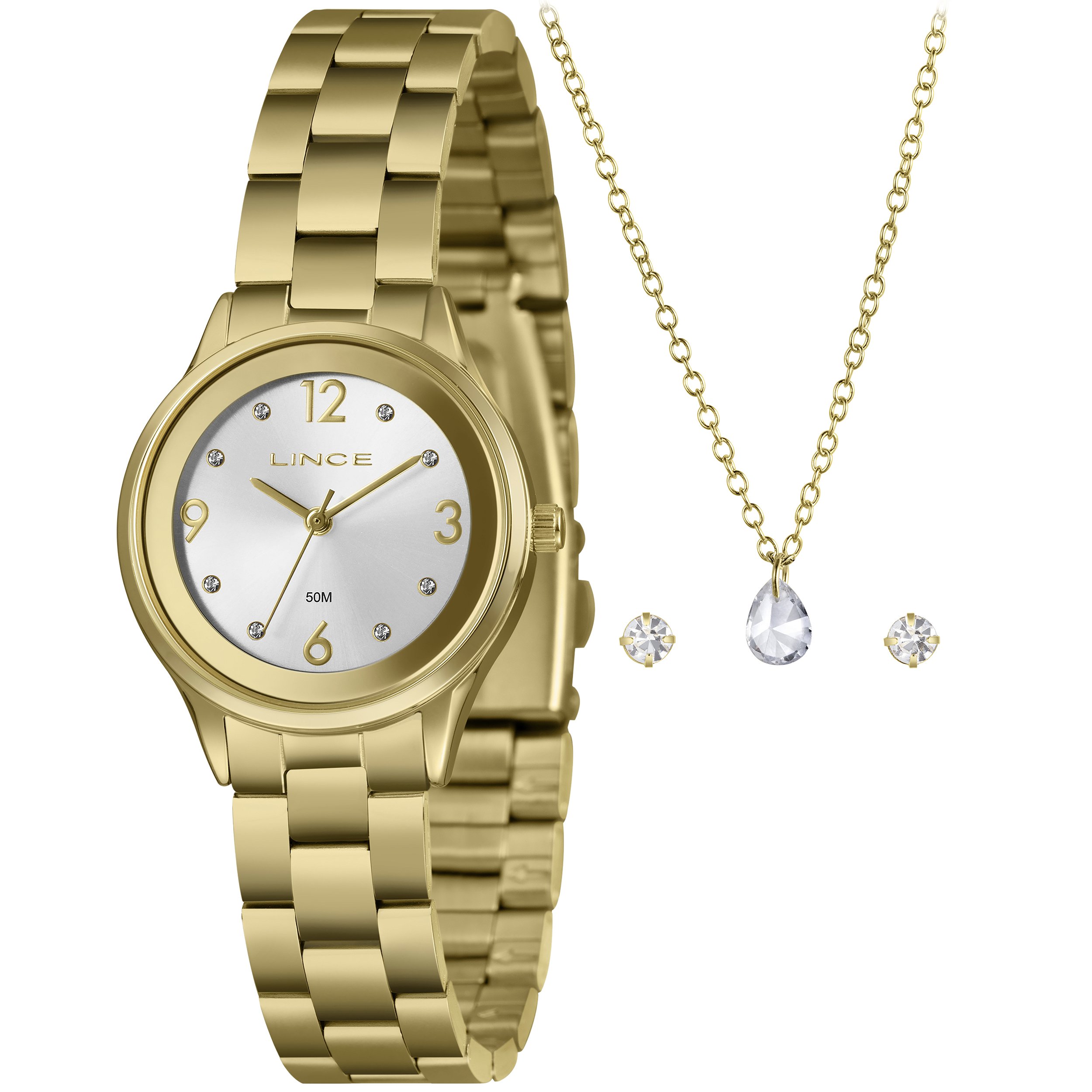 RELÓGIO LINCE CAIXA E PULSEIRA DE METAL AMARELO. 1 ANO DE GARANTIA.