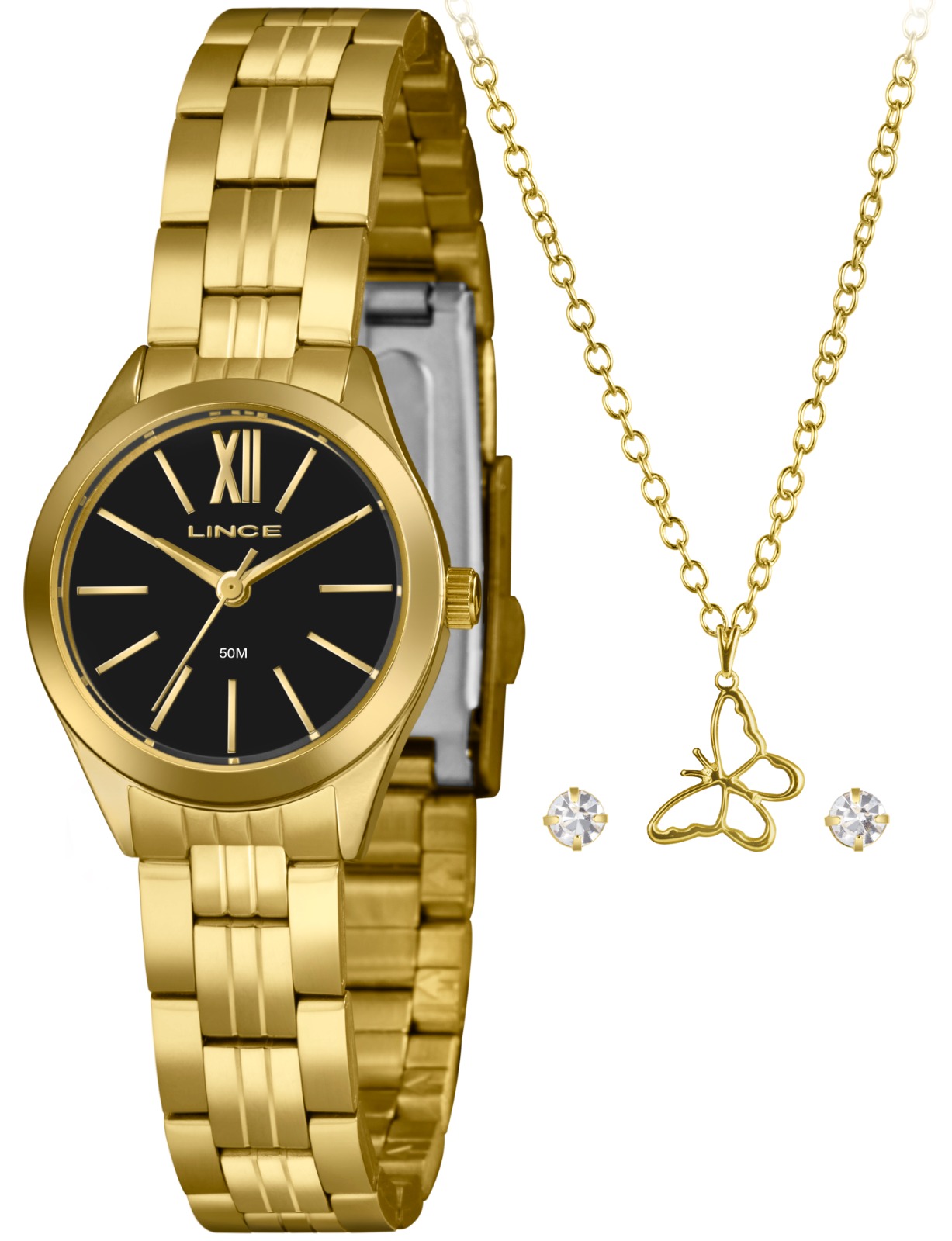 RELÓGIO LINCE CAIXA E PULSEIRA DE METAL DOURADO. 1 ANO DE GARANTIA.