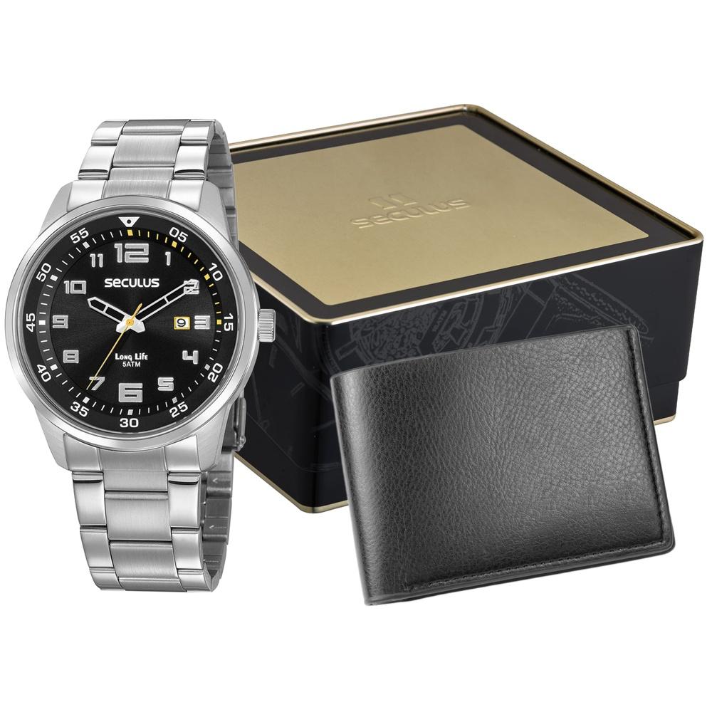 RELÓGIO SECULUS CAIXA E PULSEIRA AÇO PRATA. 2 ANOS DE GARANTIA.